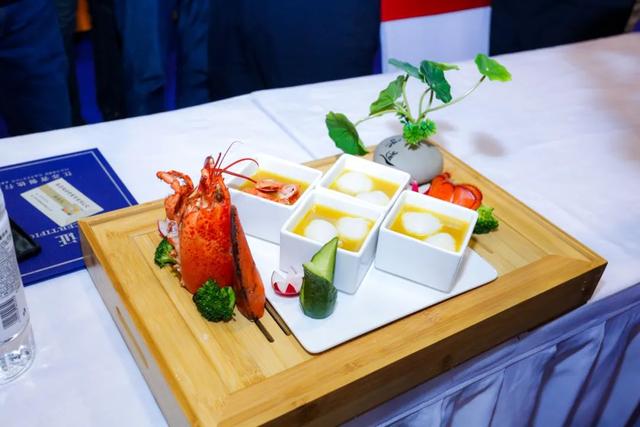 大赛现场,黑松露野米焗大虾、荷香百合虾球、金桂扒元鱼、鱼子酱芙蓉龙虾球、法式小羊排配红香酥梨、牛油果炖素燕窝等菜肴。将传统与现代,中式与西式,菜品与面食有机地融合,推出一批主题新颖、创意独特、手法细腻、工艺简便、烹制方法多样,符合新消费的百变味道。