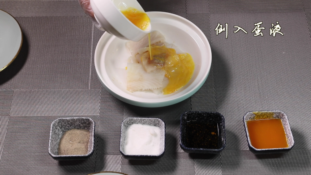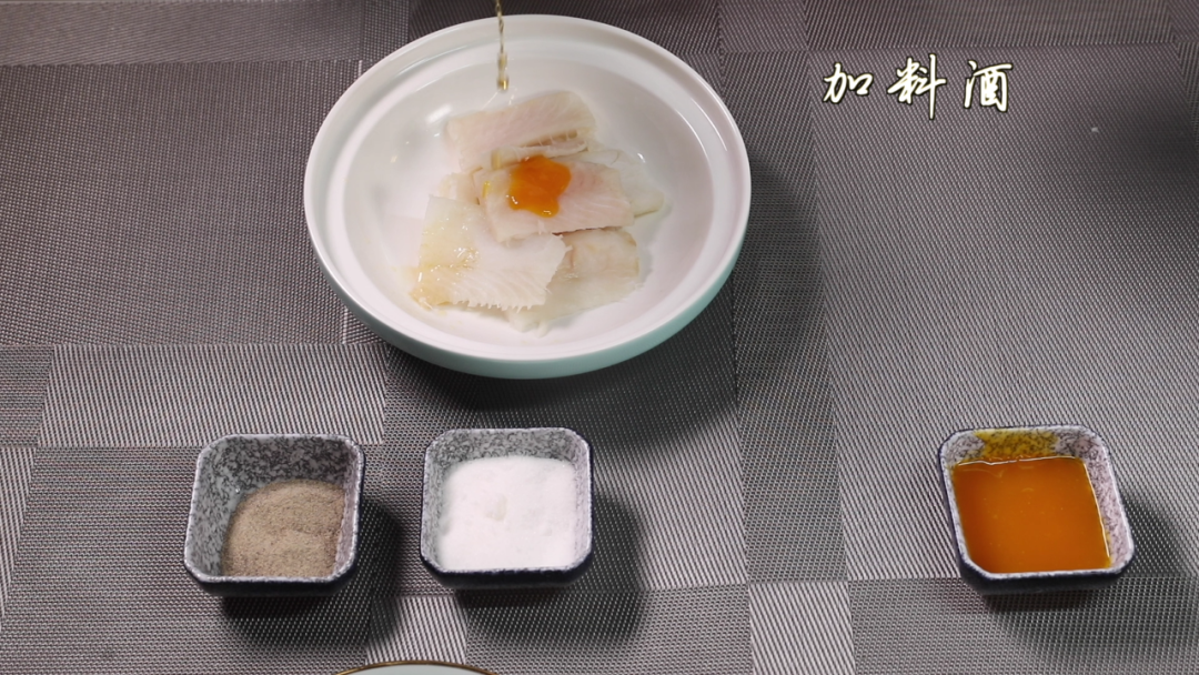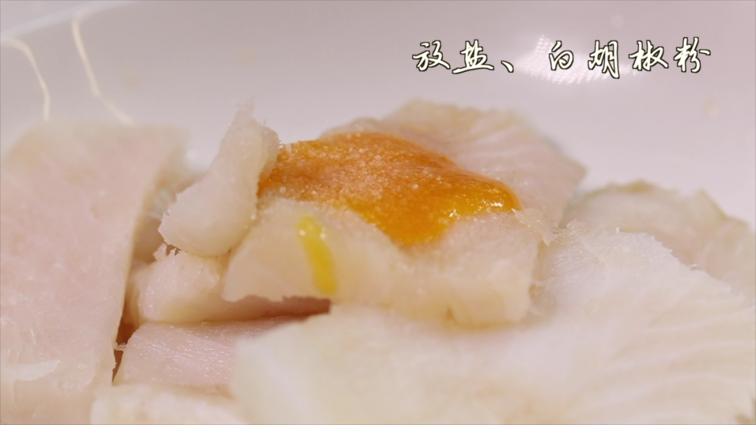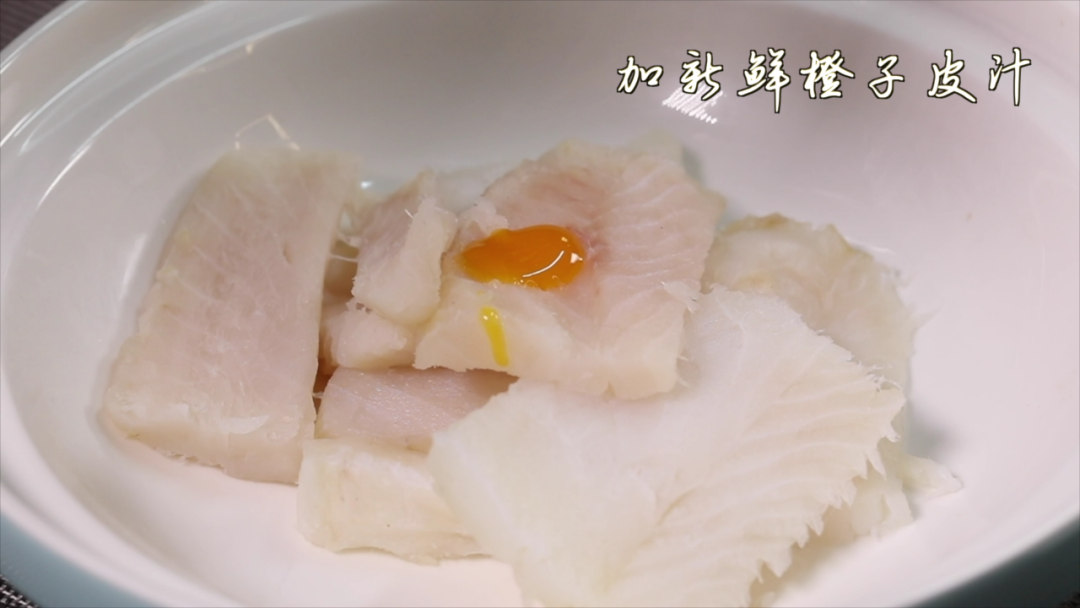 加新鲜橙子皮汁、盐、白胡椒粉、鸡蛋、生粉