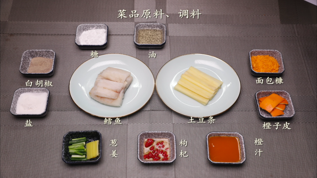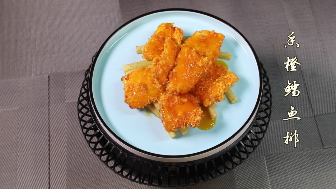 鳕鱼排蘸橙汁食用,边上放土豆条即可