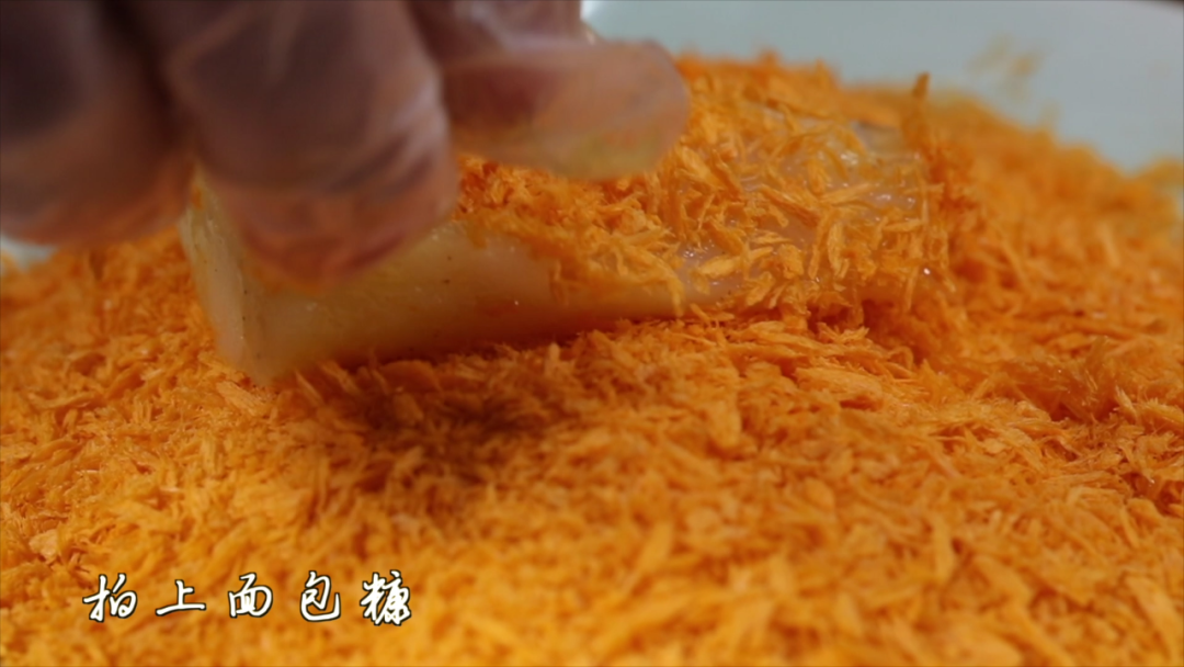 将鳕鱼排拍上面包糠