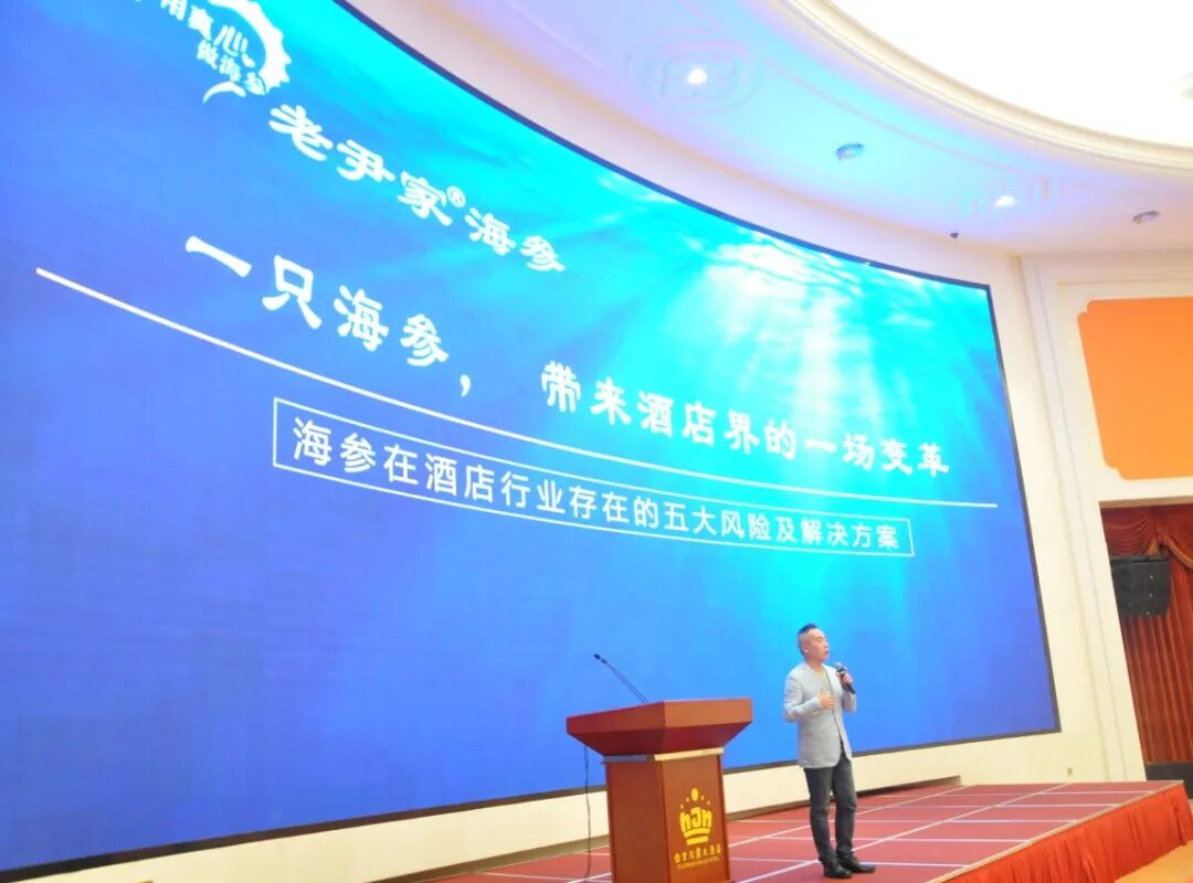 大会中,青岛老尹家海参股份有限公司销售总经理赵瑞作餐饮新零售产业新融合主题发言。